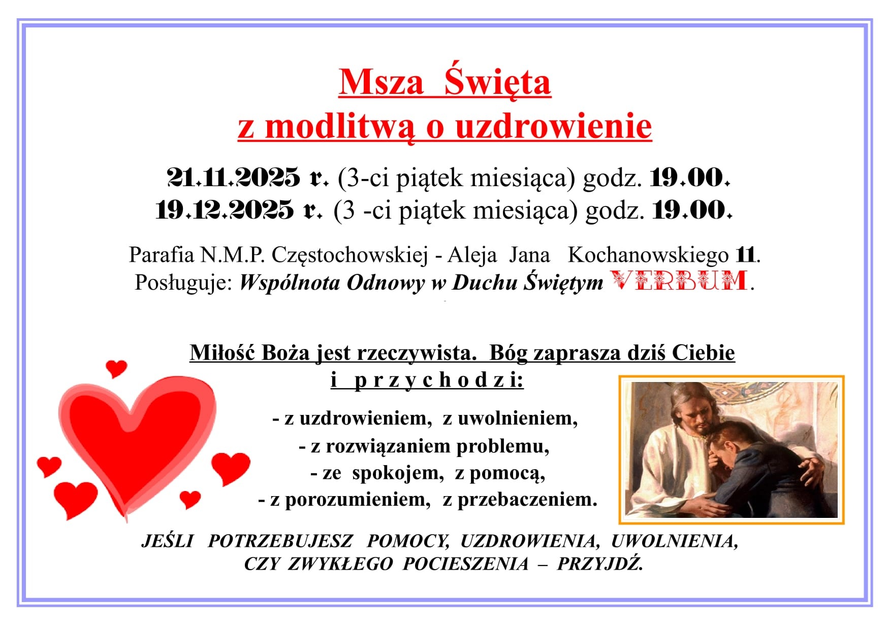 2025 Verbum - Plan Mszy św. z modlitwą o uzdrowienie - II półrocze