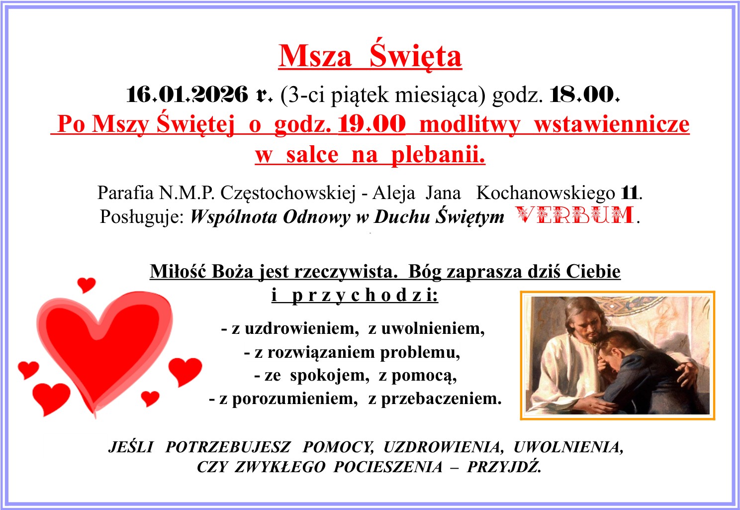 2026 Verbum - Plan Mszy św. z modlitwą o uzdrowienie - I półrocze