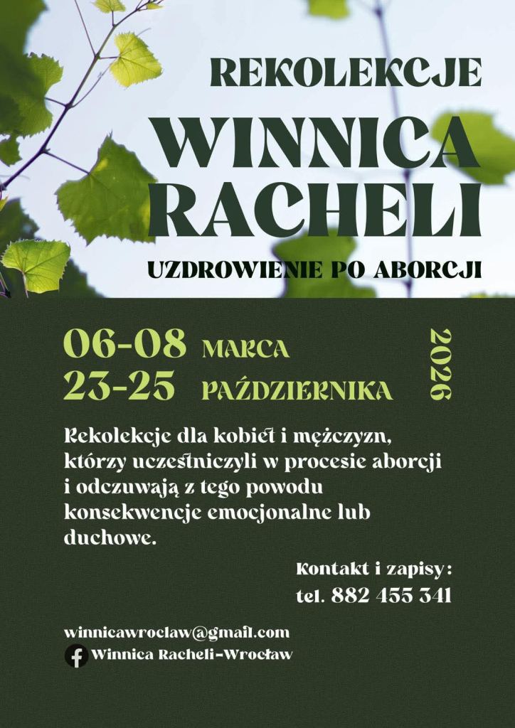 Rekolekcje 2026 - Winnica Racheli - są skierowane do osób przeżywających problem aborcji.