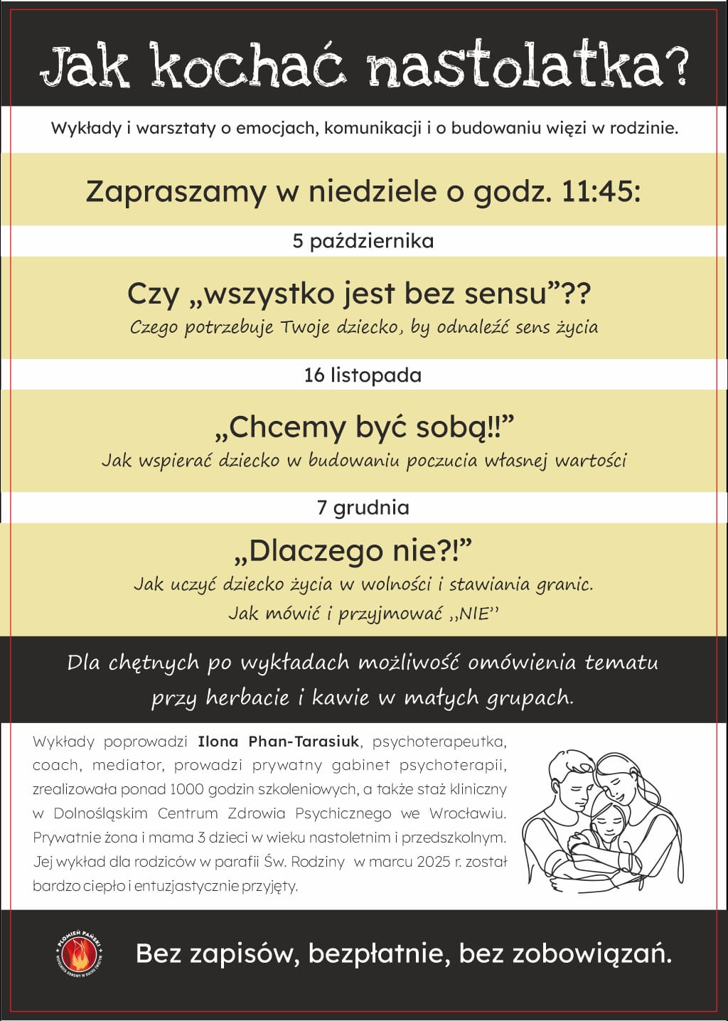 Wspólnota Odnowy w Duchu Świętym Płomień Pański zaprasza na cykl wykładów i na warsztaty pod wspólnym tytułem "Jak kochać nastolatka".
