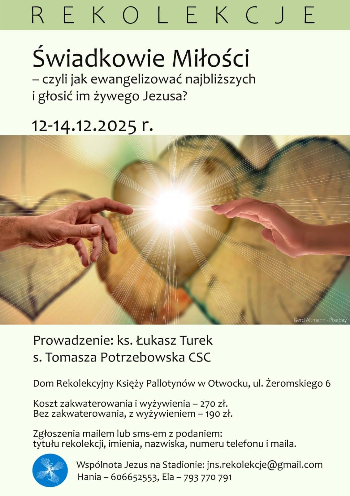 Zapraszamy na rekolekcje zatytułowane Świadkowie Miłości - jak ewangelizować najbliższych.