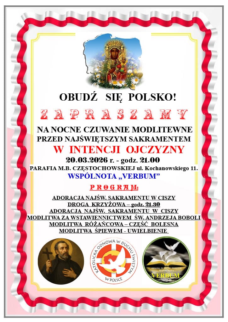 Wspólnota VERBUM zaprasza na nocne czuwanie modlitewne przed Najświętszym Sakramentem w intencji Ojczyzny.